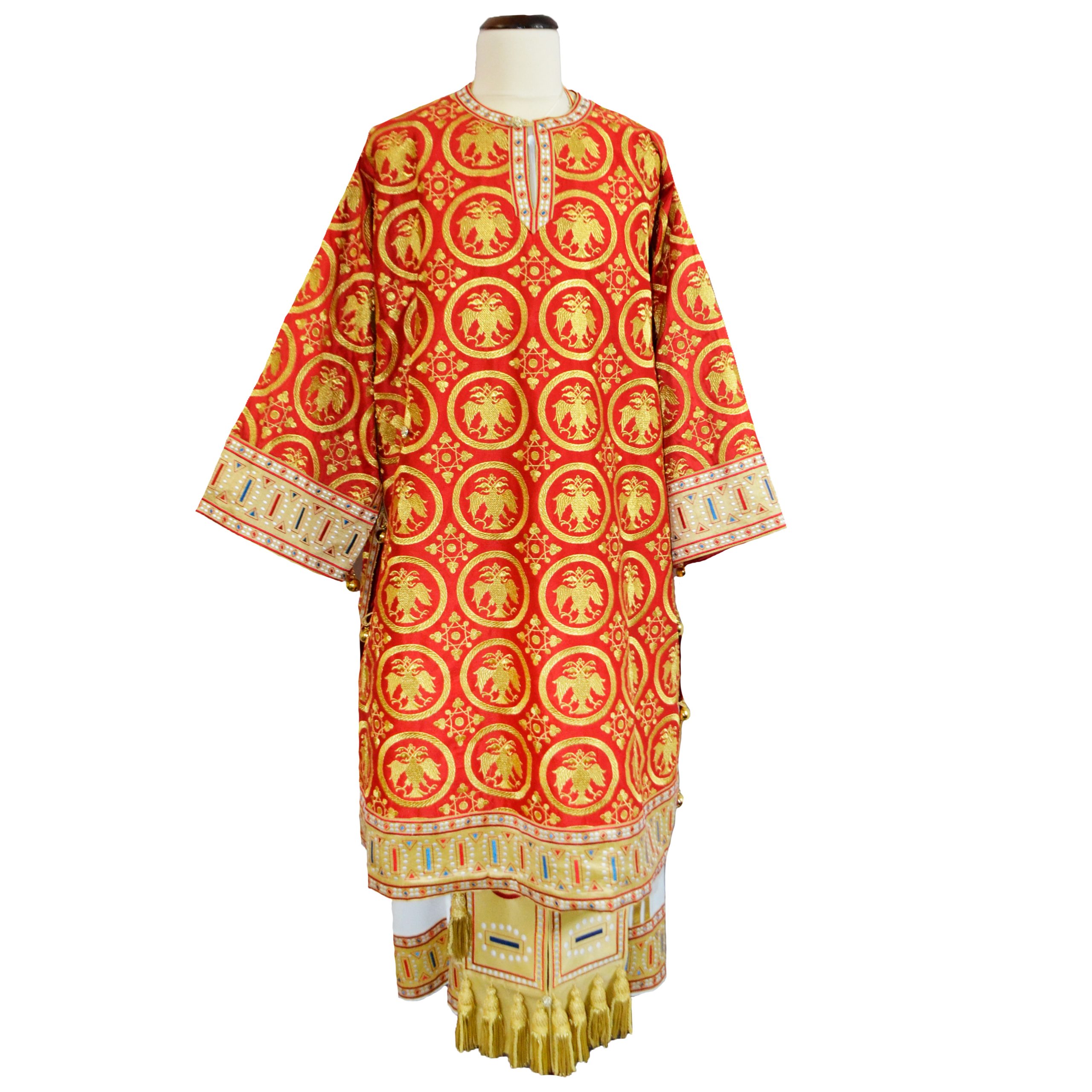 The price of the vestment depends on the chosen material, complexity, and amount of embroidery.